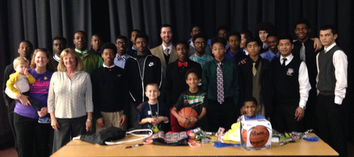 for bringing good cheer and happiness through our annual Holiday Gift Adoption Program. We select students that are in need of some holiday spirit. We collect and purchase gifts for these students.The team spends the afternoon going to there classroom and touring there school We do our very best to give back to future Knights that will walk in our foot steps. We try to have a positive and meaningful impact on the youth in our community.